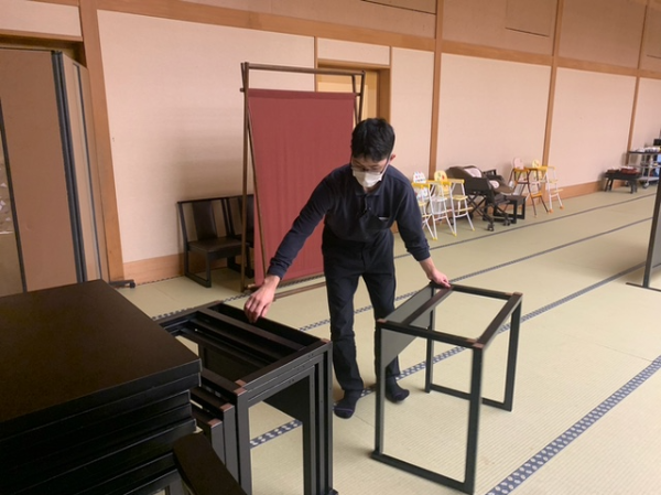 18:00 布団敷き、宴会場の片付け